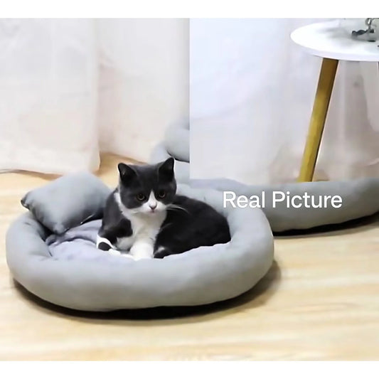 Calming Cat Beds with Pillow for Small Medium Dogs and Cats, round Dog Puppy Cuddler Cozy Bed, Washable Fluffy Plush Pet Bed Thickened Dog Kennel Mat for Puppy Sleeping, S 40CM