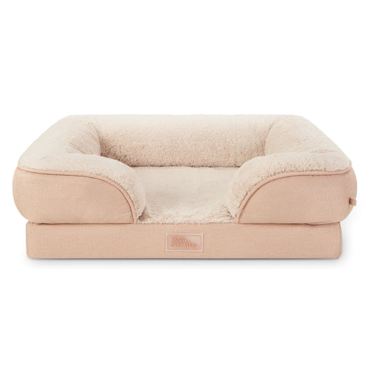 EVERYDAY Cuddletown Comfy Solid Bolster Sofa Pet Bed, Supportive & Calming Egg Crate Foam, Water Repellent, Non-Slip Bottom, Machine Washable Cover, Warm Taupe, Medium 28"X23"X8"