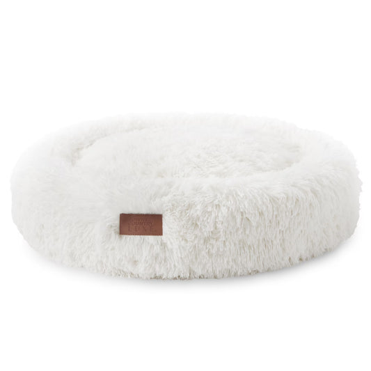 LUXE Cuddletown Fuzzy Solid Donut Pet Bed, Soft, Cozy & Calming, Water Repellent, Non-Slip Bottom, 100% Machine Washable, Cream, Small 24"X24"X7" Round